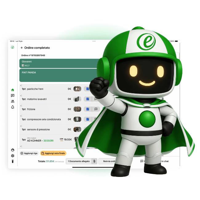 eChat risponde alle officine 24 ore su 24, elabora preventivi e ordini in automatico interagendo con le migliori banche dati.